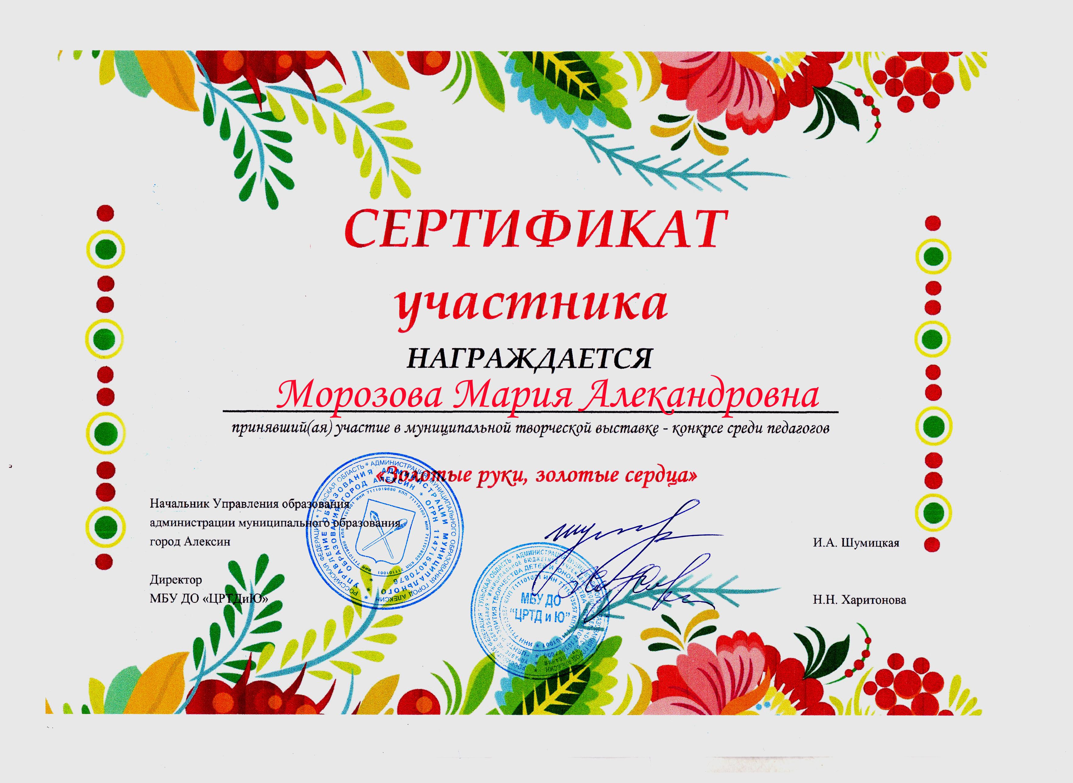 Муниципальный творческий конкурс среди педагогов «Золотые руки, золотые сердца» (участие) |
