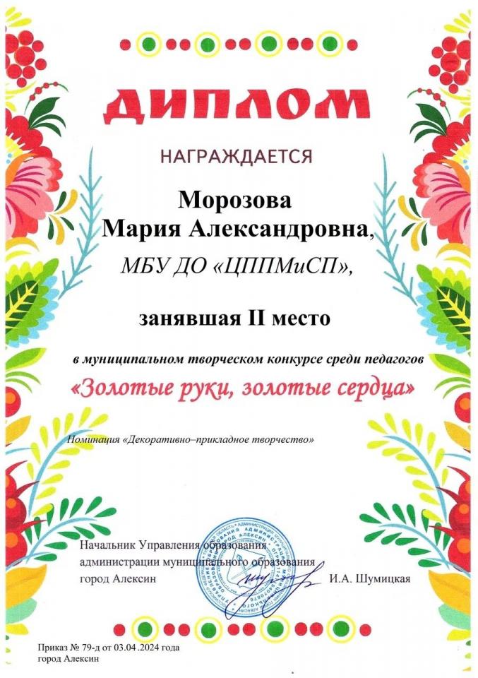 Муниципальный творческий конкурс среди педагогов «Золотые руки, золотые сердца» (призер - 2 место) |