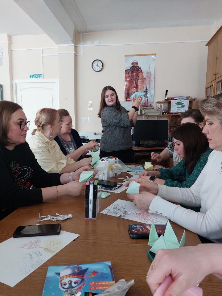 Также коллеги смогли ознакомиться с разработками педагогов-психологов Батечко Ольги Вячеславовны (МБОУ «Гимназия №18»), Лисицыной Ирины Игоревны (МБОУ «Гимназия №13») и Мареевой Екатерины Андреевны (МБОУ "СОШ №1"). Участникам предложили погрузиться в творческий процесс: создание образов с использованием фотографии, фольги и техники оригами.