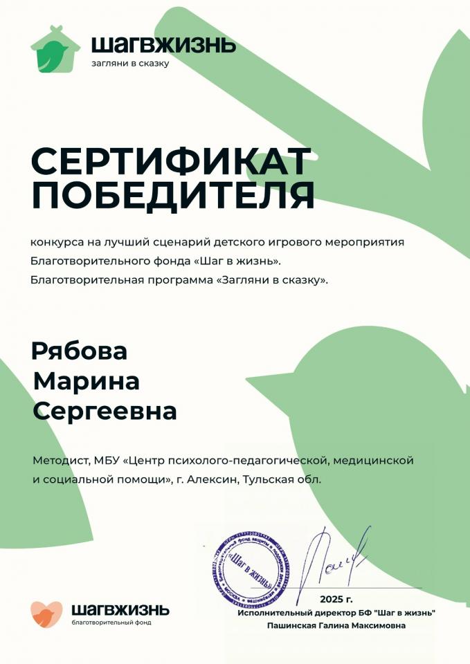 Наш проект, представленный на конкурсе творческих проектов программы «Загляни в сказку», признан лучшим! Он получил высокую оценку жюри и удостоился специального гранта Благотворительного фонда «Шаг в жизнь».