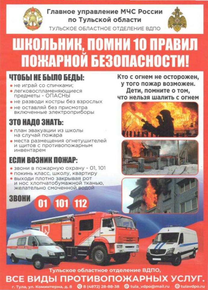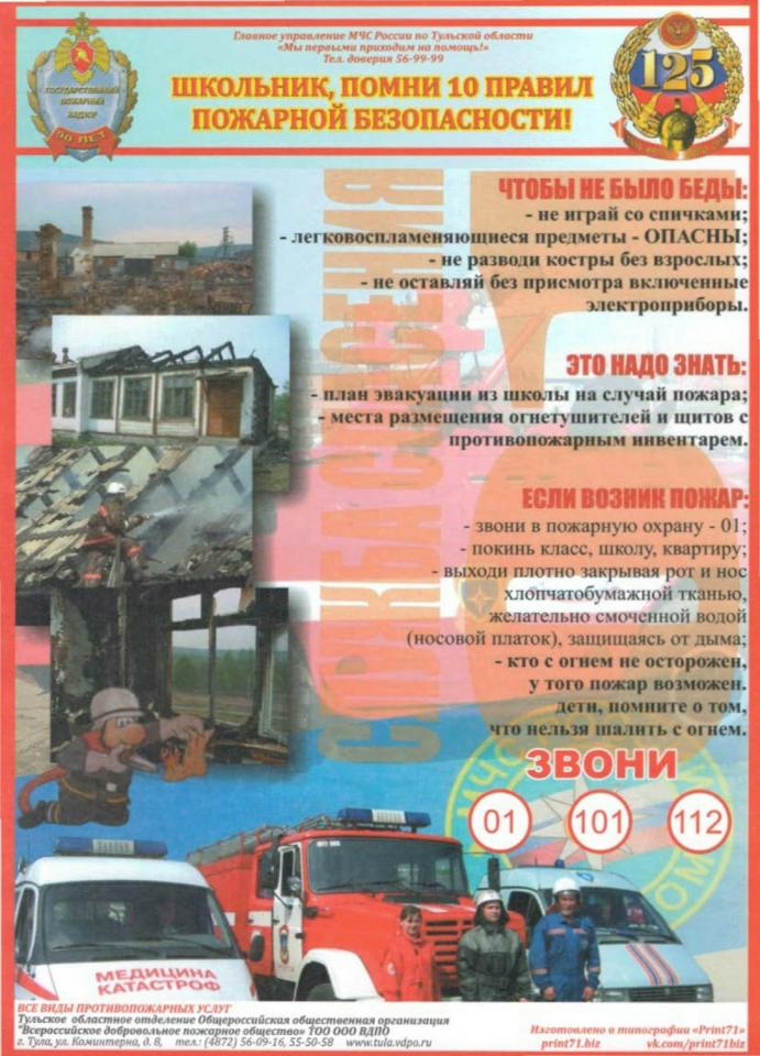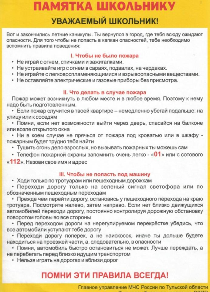 Памятки по пожарной безопасности для школьников