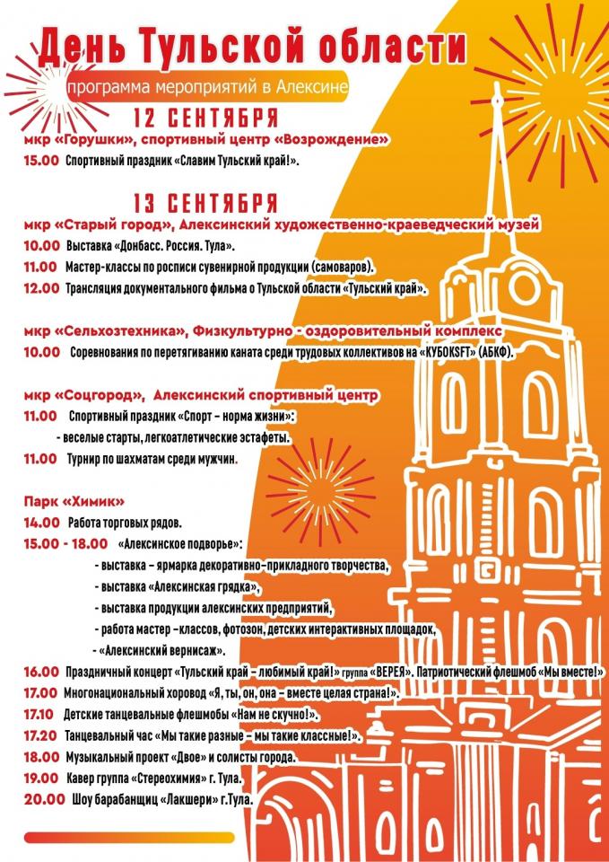 Программа мероприятий, посвящённая Дню Тульской области