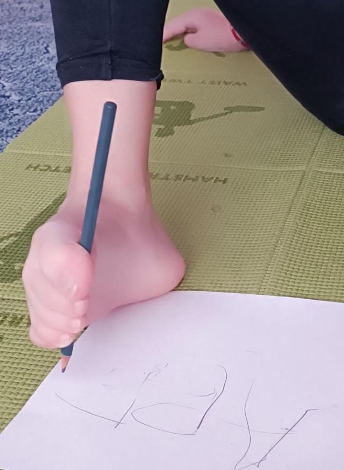 Одно из заданий стало настоящим испытанием ловкости и терпения: участники научились уверенно удерживать карандаш стопой и создавать настоящие шедевры искусства, решать арифметические примеры и писать тексты ногой!